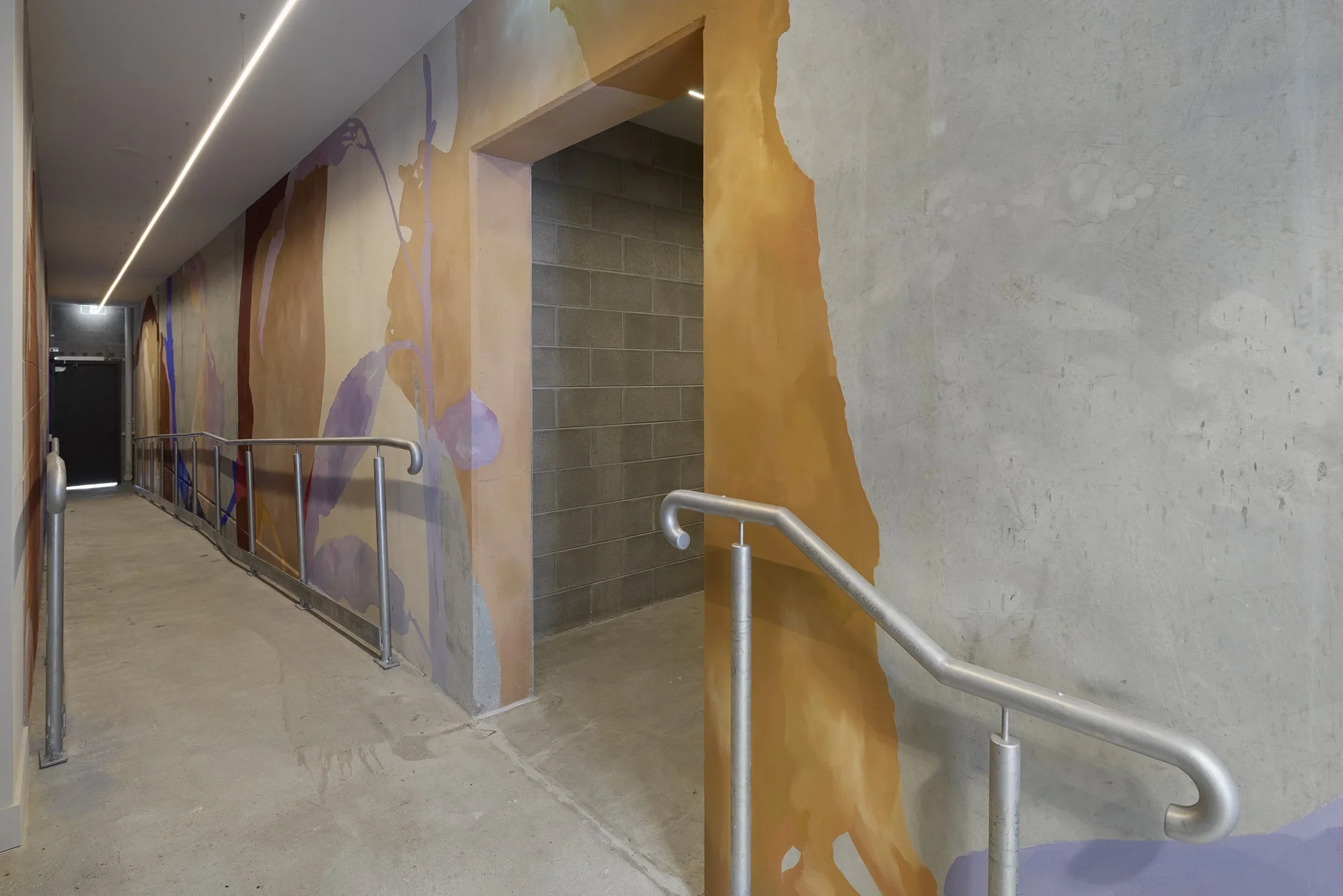 From the outset, our curatorial approach was guided by the idea of art as a connector — a way to ground the building in its context and to offer those who encounter it a sense of belonging. Working closely with the project team, we identified moments throughout the interiors where art could shape experience: creating thresholds, anchoring gathering spaces, and sparking moments for both reflection, joy and curiosity.